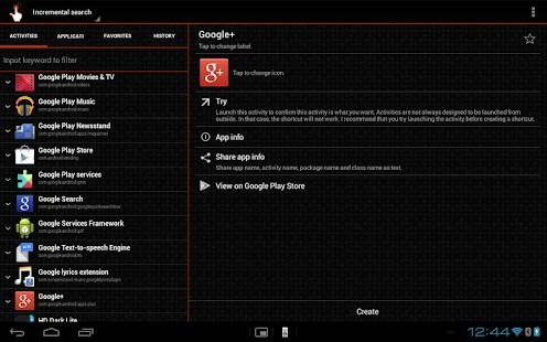 يمكن لهذا التطبيق إنشاء اختصار لتطبيق من قائمة الأنشطة المثبتة على هاتفك.