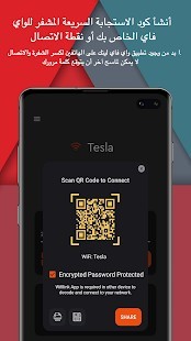 يمكنك بكل سهولة من مشاركة الواي فاي أو نقطة الاتصال الخاصين بك بدون الكشف عن كلمة المرور! يمكن مشاركة الانترنت عن طريق مسح كود الاستجابة السريعة أو هزّ هاتفك بكل بساطة.