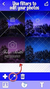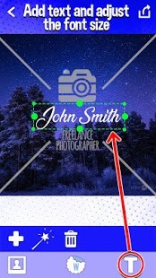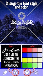إذا كنت بحاجة إلى نص ذكي على الصورة مع أفضل الخطوط وطريقة أنيقة للكتابة على تطبيق الصور، ثم تحتاج إلى تثبيت هذه الصورة تطبيق العلامة المائية. إضافة العلامة المائية الشعار الخاص بك والنص إلى صور بألوان مختلفة. يمكنك تطبيق توقيع حقوق الطبع والنشر للصور في بضع ثوان، وحماية صورك من الأشخاص الذين ليس لديهم ترخيص لاستخدامها. إنشاء العلامة المائية، ووضعه على رأس الصورة ويتم العمل! سوف يكون لكم عن دهشتها ما هذا النص على محرر الصور يمكن القيام به. تثبيت هذه العلامة المائية حقوق التأليف والنشر مجانا لصورك اليوم وتتمتع هذه علامة مائية علي الصور - إضافة نص إلى الصور!