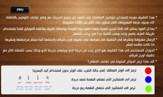 عود شرقي هو التطبيق الافضل بالنسبة لمن يبحث عن تعلم المقامات والسلم الشرقي ,حيث يحتوي على ميزات ومواصفات خاصة بالموسيقى الشرقية (الربع تون).كما حرصنا على ان نضيف خاصيه تعليم المقامات الشرقية الثمانية الاساسية ( العجم , الحجاز , النهاوند , الكرد , الراست , البياتي , السيكاه و الصبا ) حيث يوجد داخل التطبيق 56 صوره يمكنك من خلالها اختيار المقام من اي درجة وستظهر علامات تشير الى سلم المقام على العود مما يمكنكم من ادراك واستيعاب مفاتيح ونغمات كل مقام وعلى اي درجة.