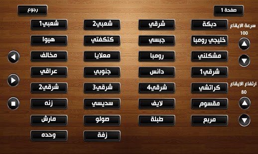 كما يمكنك التحكم بارتفاع وانخفاض صوت الادوات الموسيقية وصوت الايقاعات الشرقية المرفقة مع التطبيق.
