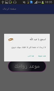 تطبيق ترفيهي يخبرك متى سوف تتزوج ويخمن لك موعد زواجك .هل هو بعد ايام او بعد اشهر او بعد سنين. البرنامج للترفيهي النفسي فقط بعيدا عن الدجل ولا ندعي من قريب ولا بعيد معرفة الغيب ! و المعلومات التي ينتجها البرنامج ترفيهية فقط . نتمنى لكم زواجا سعيدا وبالرفاهية والبنين .