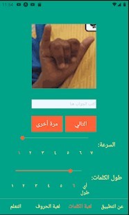 We suggest studying the list on the “learning” page for exposure to the alphabet which has become the standard system in different parts of the Arab world, then practicing using the “game” page. This game is useful for improving one’s receptive skills. One may adjust the length of words and presentation speed. Many of those who study sign language learn to produce signs without practicing receptive skills and thereby do not fully understand the signing of Deaf people. For that reason, this app was created to help the sign language student in an initial step toward solving that problem. We also suggest that the student begin with short words and a lower speed before raising the difficulty.