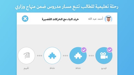 التعلم والممارسة عبر الأنشطة الصفية والواجبات المنزلية التي تمّ تعيينها له بحسب المستوى التعليمي والصف.