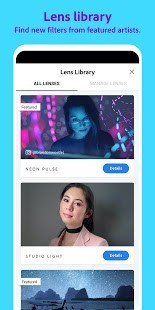 • خيارات العدسات المستوحاة من المؤثر: انظر إلى نفسك من خلال عيون المبدعين المفضلين لديك باستخدام عدسات الكاميرا الجمالية المصممة خصيصًا. يوجد أكثر من 100 تأثير للعدسة ويتم إضافة المزيد طوال الوقت ، لذلك هناك دائمًا شيء ممتع لاكتشافه.