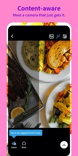 • توصيات إدراك المحتوى: اختر لقطتك وسيقوم Photoshop Camera بالباقي. إنه يعرف تأثيرات الصور التي يجب تطبيقها للحصول على أفضل نتيجة ، لذلك لا داعي للقلق عندما يتعلق الأمر بالإضاءة المناسبة والتركيز.