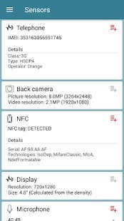 الحصول على معلومات كاملة عن جميع أجهزة الاستشعار التي يدعمها الجهاز اللوحي أو الهاتف الذكي أو جهاز يمكن ارتداؤها. عرض في تخطيط مريحة جميع البيانات من أجهزة الاستشعار جهازك المحمول في الوقت الحقيقي، وجعل أجهزة الاستشعار الاختبارات. تحقق البيانات على الرسم البياني (عرض الرسوم البيانية) وإخراج النص المتاحة لكل أجهزة الاستشعار وتحقق وصفا مفصلا لكل كشف عن والمعلمات.