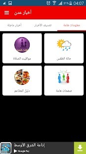 لا غنى عنه لمعرفة أخبار مدينة عدن وما حولها من مدن و قرى صغيرة سواء كنت من سكان مدينة عدن أو من زوارها الكرام يقدم التطبيق تصنيف و تبويب للأخبار لسرعة الحصول على المعلومة المطلوبة يقدم التطبيق خدمة حفظ الأخبار الهامة فى المفضلة لأى مدة من الزمن بعيدا عن الأخبار الحديثة التى تجدد تلقائيا و يحذف منها ما يمر عليه الأسبوع يقدم التطبيق خدمات أخرى صغيرة مثل مواقيت الصلاة و حالة الطقس اليوم و أين تذهب هذا المساء وغيرها مصادر الأخبار متنوعة من الجرائد و المجلات و المواقع الالكترونية و الصفحات الرسمية للجهاز الحكومى و أماكن الخدمات و الترفيه و غيرها نحاول قدر الامكان خدمتكم بالاخبار الموثقة مع الابتعاد عن الاثاره و المبالغة و الالتزام التام بأخلاقيات المجتمع الحميدة.