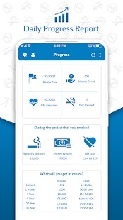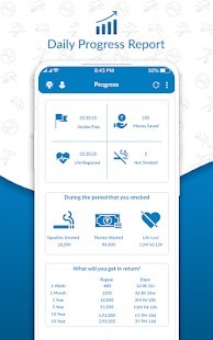 سيقوم هذا التطبيق بتتبع تقدمك عن طريق حساب الساعات التي تقضيها بدون تدخين وكذلك الصحة التي استعادتها. سيعرض هذا التطبيق نقاط المكافآت على أنها أموال وفرتها خلال ساعات خالية من التدخين. يحتوي على علامة تبويب للمكافأة توفر لك تحديد هدف المكافأة الخاص بك ويمكن أيضًا تتبع تقدمك في تحقيق نقاط المكافأة المطلوبة. يوفر التطبيق علامة تبويب صحية يمكن أن تساعدك على تتبع تحسن صحتك. في اليوميات ، يمكنك إضافة وإزالة والتعليق على تقدم رغبتك.