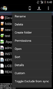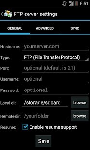 يمكنه إدارة العديد من تكوينات FTP. يأتي مع كل من الجهاز ومتصفح ملفات FTP. يوفر ميزات التنزيل والتحميل والمزامنة والمشاركة مع دعم استئناف. يمكنه فتح (محلي / بعيد) وإعادة تسمية وحذف وتحديث أذونات (chmod) وتشغيل أوامر مخصصة والمزيد. دعم مفاتيح SSH RSA / DSA. مشاركة من المعرض متاح. النوايا متاحة لتطبيقات الطرف الثالث. تتوفر مزامنة المجلد في إصدار Pro فقط.