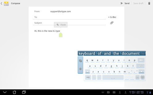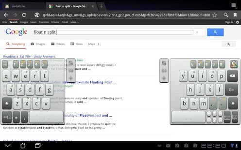على لوحة المفاتيح سبليت "يطفو" فوق الشاشة، ويمكن أن تقع في أي مكان على الجهاز اللوحي. انها صغيرة وأنيقة وتحتل تقريبا أي مساحة الشاشة، وأنها تحصل على أفضل: يمكنك تحريكه وتغيير حجمه مع سحب وإسقاط حدسي!