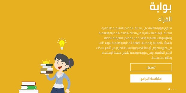 تحتوي البوابه الخاصه بعموم القراء علي المصادر المعرفية المحلية والإقليمية والعالمية باللغة العربية والإنجليزية مدعمه بواجهة تشغيل وبحث سهلة الإستخدام ومن أبرز المصادر قناة ديسكفري العالميه وقناة ناشيونال جيوجرافيك التعليمية والتي توفر العديد من وسائل شرح وتبسيط العلوم المختلفه في صورها المقروءه والمسموعه والمرئية كما تحتوي علي موسوعة بريتانيكا العامه الشهيره والتي توفر ملايين المقالات والفيديوهات والصور في كل إتجاهات المعرفة بالإضافه إلي آمهات الكتب التراثية والأدبية من المكتبة البريطانية باللغة العربية