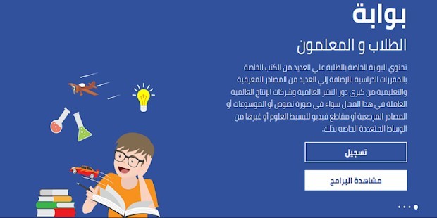 وللطلبه بوابة خاصة سهلة الإستخدام تحتوي علي نظام بحث موحد مرن الإستخدام للبحث في آلاف المقرراة الدراسية للعلوم المختلفه للمراحل الجامعيه وقبل الجامعية وكذلك الكتب المرجعية من كبري دور النشر العامله في هذا المجال فضلاً عن موسوعة بريتانيكا للطلبة ومئات الآلاف من الفيديوهات والصور الحقيقيه والتخيليه لتبسيط إستيعاب العلوم من قنوات ديسكفري وناشيونال جيوجرافيك