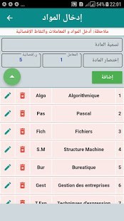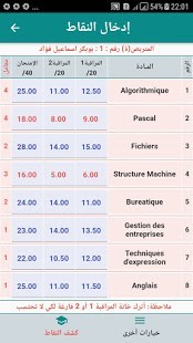 والتطبيق يمكنهم من إدراج المتربصين والمواد وحساب المعدلات وعرض النتائج التالية: