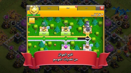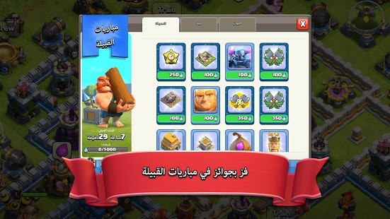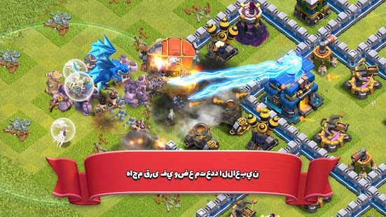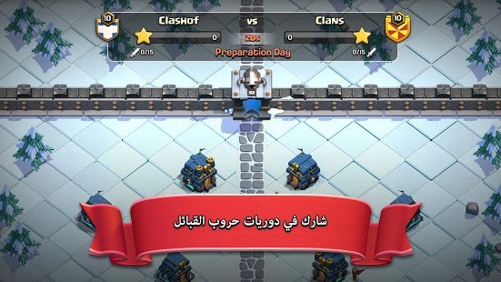 ●• انضم إلى ملايين اللاعبين في أنحاء العالم بينما تبني قريتك، وتكوّن قبيلة، وتنافس في حروب قبائل ملحمية!محاربون بربريون بشوارب ضخمة، وسحرة يقذفون النار، وقوات أخرى فريدة بانتظارك! ادخل عالم Clash!الميزات الجديدة:● اسحق قرى الأعداء باستخدام آلة حصار جديدة تمامًا اسمها قاذفة الجذع.● رحب بأحدث إضافتين إلى تشكيلة القوات الخارقة، وهما الساحر الخارق وكلب الجليد.● يتضمن التحديث كذلك تعويذة جديدة هائلة، ومحتوى جديدًا خاصًا بقاعة المدينة 13، وتغييرات جودة لعب متقنة، والمزيد.ميزات أساسية:● انضم إلى لاعبين آخرين في قبيلة أو أنشئ قبيلتك الخاصة، وقم بدعوة أصدقائك.● قاتل مع زملائك في حروب القبائل بصفتكم فريقًا ضد ملايين اللاعبين النشطين من شتى أنحاء العالم.● اختبر مهاراتك في دوريات حروب القبائل التنافسية، وأثبت أنك الأفضل.● شكّل تحالفات، وتعاون مع قبيلتك في مباريات القبائل لتربح عناصر سحر قيمة.● ضع إستراتيجيتك القتالية الفريدة باستخدام تشكيلات لا حصر لها من التعويذات والقوات والأبطال!● نافس أفضل اللاعبين من حول العالم، وابلغ قمة لوحة الصدارة في دوري الأسطورة.● اجمع الموارد، واستول على غنيمة اللاعبين الآخرين لترقية قريتك وتحويلها إلى حصن. دافع عن قريتك ضد هجمات الأعداء بترسانة كبيرة من الأبراج والمدافع والقنابل والفخاخ ومدافع الهاون والجدران.