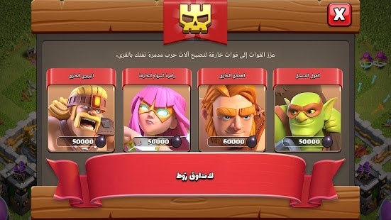 الرجاء ملاحظة! Clash of Clans هي لعبة يمكن تنزيلها ولعبها مجانًا، لكن يوجد أيضًا بعض عناصر اللعبة التي يمكن شراؤها مقابل نقود حقيقية. إذا كنت لا ترغب في استخدام هذه الميزة، فالرجاء تعطيل عمليات الشراء داخل التطبيق في إعدادات الجهاز الخاص بك. وبموجب أيضًا شروط الخدمة وسياسة الخصوصية الخاصتين بنا، يجب أن يبلغ عمرك 13 عامًا على الأقل للعب Clash of Clans وتنزيلها.