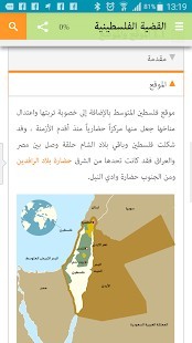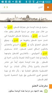 تطبيق يتناول دراسة حضارة فلسطين القديمة، وجغرافية فلسطين التاريخية، وفلسطين في العهد العربي الإسلامي، والمجتمع العربي الفلسطيني، والبرنامج الصهيوني وجذوره التوراتية، وفلسطين والعلاقات العربية، ثم منظمة التحرير الفلسطينية، وأخيراً اتفاقية إعلان المبادئ وقيام السلطة الوطنية الفلسطينية.