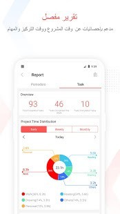 - 📊 التقرير: إحصائيات مفصلة لتوزيع الوقت الخاص بك ، المهام المنتهية