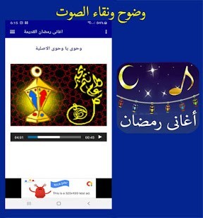اجمل واشهر اغانى شهر رمضان القديمة جودة عالية MP3 مع خلفيات رمضانية متحركة وفوانيس رمضان لنسترجع معأ اجمل ذكريات الزمن الجميل مع اغانى رمضان ايام زمان ومنها :رمضان جانا - مرحب شهر الصوم - وحوى يا وحوى - والله بعودة يا رمضان - اهو جه يا ولاد - افرحوا يا بنات - حالو يا حالو- يا بركة رمضان - والله لسه بدرى يا شهر الصيام - المسحراتىيتميز التطبيق بأنه:سهل الاستخدام ومساحتة صغيرةيحتوى على قائمة تشغيل متتالى للاستماع المتواصلوضوح ونقاء الصوت.