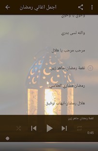 يحتوي تطبيق اغاني رمضان على اجود اغاني رمضان المجموعة الكاملة روعه و بدون انترنت, نجد في التطبيق اغاني رمضان مصرية.