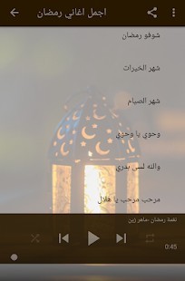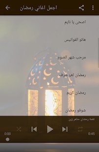 • يمكنك الإستماع للأغاني في الخلفية وإستعمال تطبيقاتك الأخرى• كل الأغاني الكلماتتطبيق اغاني رمضان يحتوي علىاغنيةرمضان بصوت هشام عباس تطبيق اغاني رمضان يا ريت كل السنة رمضان تطبيق اغاني رمضان مرحب شهر الصوم تطبيق اغاني رمضان2020 هلال رمضان تطبيق اغاني رمضان2020 هاتو الفوانيس تطبيق اغاني رمضان2020بدون نت والله لسا بدري يا شهر الصيام تطبيق اغاني رمضان2020بدون نت والله بعودة يا رمضان