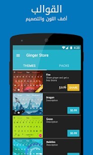 يندرج استخدام هذا التطبيق تحت إطار سياسة الخصوصية الخاصة بنا: htttp://www.gingersoftware.com/termsandprivacy/.