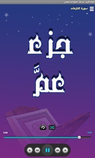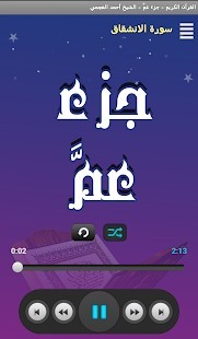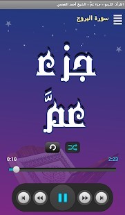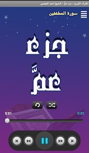 - يساعدك هذا التطبيق على الاستماع الى القرآن الكريم - جزء عم بصوت الشيخ احمد العجمي. - يعمل دون الحاجة للاتصال بالانترنت. - يمكن تنزيله عبر 3G. - يوجد به خاصية اعادة الاستماع للسورة. - يوجد به خاصية اختيار الصور بشكل عشوائي. - يتم ايقاف الصوت بشكل تلقائي عند ورود مكالمة. - يعمل في الخلفية. - يعمل بشكل تلقائي. - اذا اعجبكم التطبيق نرجوا تقيمه ومشاركته مع الاصدقاء. - ارجو من الله العلي القدير ان يتقبل مني ومن عائلتي ومن جميع المسلمين الاحياء منهم والاموات هذا التطبيق. - لا تنسونا من صالح دعاؤكم.