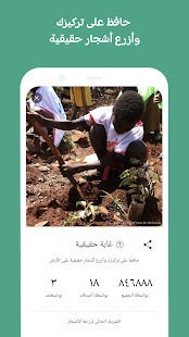 • نظراً لقيود الميزانية, فإن أقصى عدد للأشجار الحقيقية التى تستطيع زراعتها هو خمسة أشجار. ومع ذلك, سنقدم أحداثاً محدودة تسمح للمستخدمين بزراعة المزيد من الأشجار الحقيقية. يرجى متابعة صفحة وسائل التواصل الاجتماعي الخاصة بنا أو التحقق من الإعلانات داخل التطبيق لمزيد من التحديثات.