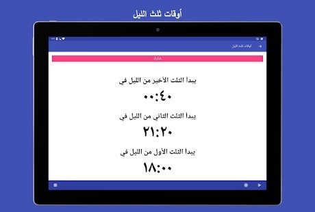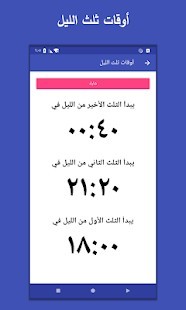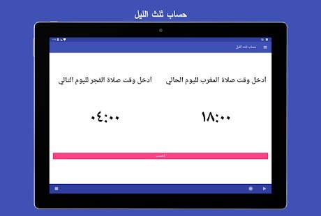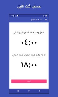 يقدم برنامج "حساب ثلث الليل" أوقات الثلث الليل الأول و الثاني و الأخير بمظهر عصري و حديث و يتمتع بالمواصفات التالية: