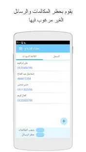 * حظر المكالمات وحجب الرسائل النصيه من أى رقم هاتف أو محمول فى القائمة السوداء. القائمة السوداء ستساعدك على التخلص من المضايقات والإزعاج من الأشخاص المزعجين الذى تريد تجاهلهم والذين يقومون بتكرار محاولات الإتصال عن طريق الهاتف.