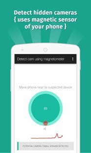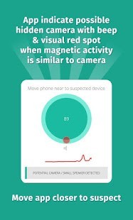 هذا التطبيق بتحليل النشاط المغناطيسي حول الجهاز. إذا بدا النشاط المغناطيسي مماثلة لتلك التي من الكاميرا، وهذا التطبيق زمارة ورفع الانذار بالنسبة لك بحيث يمكنك مواصلة التحقيق.