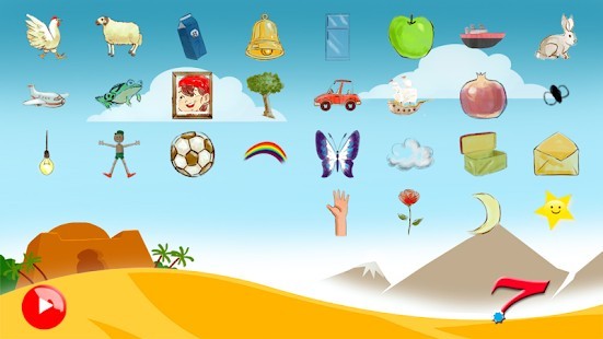 - مع كل حرف يتعلم الطفل كلمة تبدأ بذلك الحرف