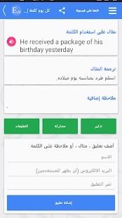 تعلم اللغة الإنجليزية - من خلال البرنامج راح تشعر ان حفظ الكلمات أصبح عملية سهلة برنامج خاص للجوال – المميز والحلو فيه أنه كل يوم يعطيك إشعار عن كلمة إنجليزية ولما تدخل على الكلمة يعطيك : -