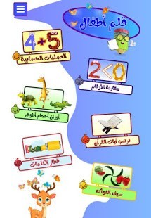 تطبيق قلم اطفال يحتوي على الألعاب التعليمية التالية: