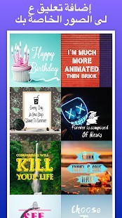 - يوفر المئات من خيارات الصور والألوان الصلبة كتابة على الصور.