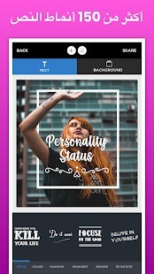 - تطبيق إضافة علامات اقتباس للصورغني بعدد من أنماط النص التي يمكن استخدامها الكتابة على الصورة.