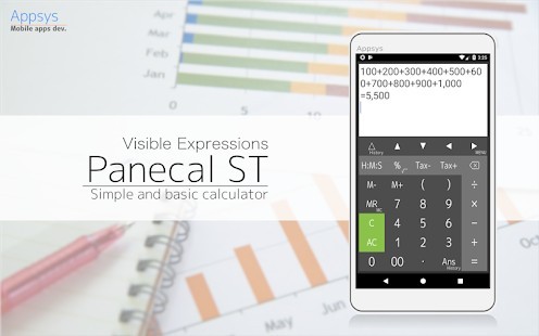 يتضمن PanecalST حاسبة الميزات التالية: * أربعة العمليات الحسابية، وجذر، والنسب المئوية، وحسابات الضرائب * الحسابات مع أقواس * الذاكرة، M +، M-، MR، MC * انتقل لأعلى / أسفل خطوط * من السهل التحرير باستخدام عملية المؤشر * قص ونسخ ولصق * التاريخ التعبير والجواب التاريخ * فاصل التجمع شكلي والعشرية