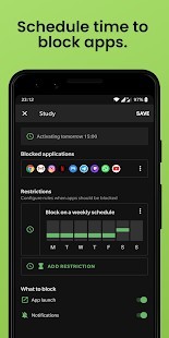 ★ حظر التطبيقات في أوقات محددة خلال الأسبوع.