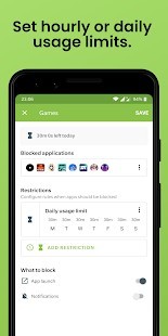 🕓 حظر تطبيقات محددة في أوقات محددة حدد مجموعة من التطبيقات وقم بإنشاء جدول زمني مخصص
