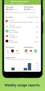 احصل على تقارير الاستخدام الأسبوعية. انظر إلى أين ذهب وقتك ، واستخدمه للتحكم في استخدام هاتفك.