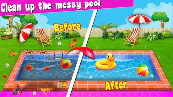 أشعر بالضيق من خلال النظر إلى حمام السباحة الفوضوي الخاص بي! اختيار الفوضى والأوساخ من حمام السباحة. اغسل البركة بأدوات غسيل متعددة للبركة. بعد تنظيف حمام السباحة ، زُيِّن المسبح بداخلية مذهلة وأملأه بالماء النظيف.