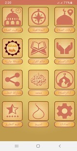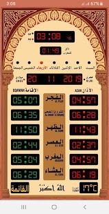 - (مواقيت الصلاة) تظهر بالشاشة الرئيسة بشكل ساعة المسجد الالكترونية