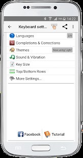 ● الضغط لفترة طويلة على مفتاح "Enter" للوصول الى إعدادات لوحة المفاتيح. ● تحديد الموضوع الخاص بك من العديد من المحاور من لوحة المفاتيح الكلاسيكية. ● ضبط حجم المفاتيح. ● تغيير الصوت والاهتزاز من الكتابة. ● حدد الصفوف المفضلة لأعلى وأسفل لوحة المفاتيح. ● قاموس الإعدادات. ● إعدادات الطباعة. ● إعدادات العرض. ● لفتات. ● الرموز التعبيرية