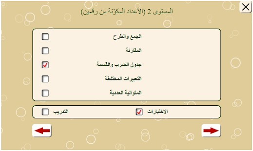 قسم "ممارسة" يحتوي على العديد من أنواع مختلفة من التمارين الرياضية التي تساعد على تطوير المهارات الشفوية الحسابات. وهو التدريب الذي يساعدك على تحسين المعرفة الرياضيات ، ثم تمر بسهولة اختبارات من هذا التطبيق.
