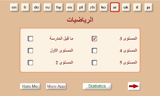 جميع تمارين الرياضيات بحسب المستويات. أعلى هو مستوى أكثر صعوبة هو الحساب. للانتقال إلى المستوى التالي يجب عليك بشكل صحيح حل جميع تمارين المستوى الحالي.