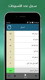 • سجل خاص يوضح لك عدد التسبيحات التي قمت بها لكل تسبيحة،