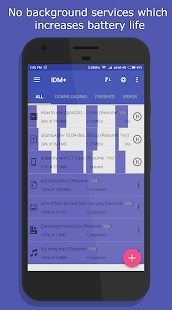 ولا يتم تشغيل خدمات الخلفية إذا لم يكن هناك شيء لتنزيله وتم تعطيل خيار التنزيل الذكي مما يزيد من عمر البطارية. إقرأ الأسئلة الشائعة عبر هذا الرابط http://www.apps2sd.info/idmp/faq