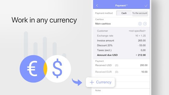 - وضع متعدد المستخدمين مع أدوار مستخدم مختلفة (أمين الصندوق والمالك. يمكن للمالك اختيار عدد الوظائف المتاحة للصرافين).
