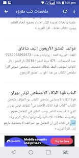 تلخيص لاهم واشهر الكتب العربية والعالمية في مختلف المجالات كتب تطوير الذات والكتب الثقافية والسياسية والروايات وكتب علم النفس والكتب الدينية والتاريخية وغيرها كما يوجد قسم بالكتب صوتية بصيغة mp3 للاستماع والتحميلحمل التطبيق الآن واقرا واستمع للكتب الاكثر مبيعا.