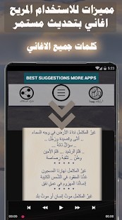 نقدم اليكم تطبيق اجمل وافضل اغاني وجلسات عود يمنية قديمة لنخبة من اشهر الفنانين الكبار بدون نت وبدقة صوت عالية + الكلمات ونوفر لكم اقتراحات اجمل البرامج الاخرى بداخل التطبيق اهم مميزات التطبيق :• التطبيق الوحيد الذي يقدم كلمات الاغاني لضمان الاستمتاع الكامل• جميع الاغاني واضحة مع التحديث المستمر لكل جديد 2021 + مميزات جديدة رائعة• تشغيل الاغاني مع الكاميرا• خاصية عدم المقاطعة اثناء المكالمات• زر البحث للوصول لأغنيتك المفضلة• امكانية التحكم بالأغاني من خلال سماعات الراس المختلفة• تشغيل جميع الأغاني بدون نت• سهولة الوصول للأغاني • أغاني واضحة وبجودة عالية • تصميم احترافي سياسة الخصوصية :https://sites.google.com/view/mediaye-songs/home.